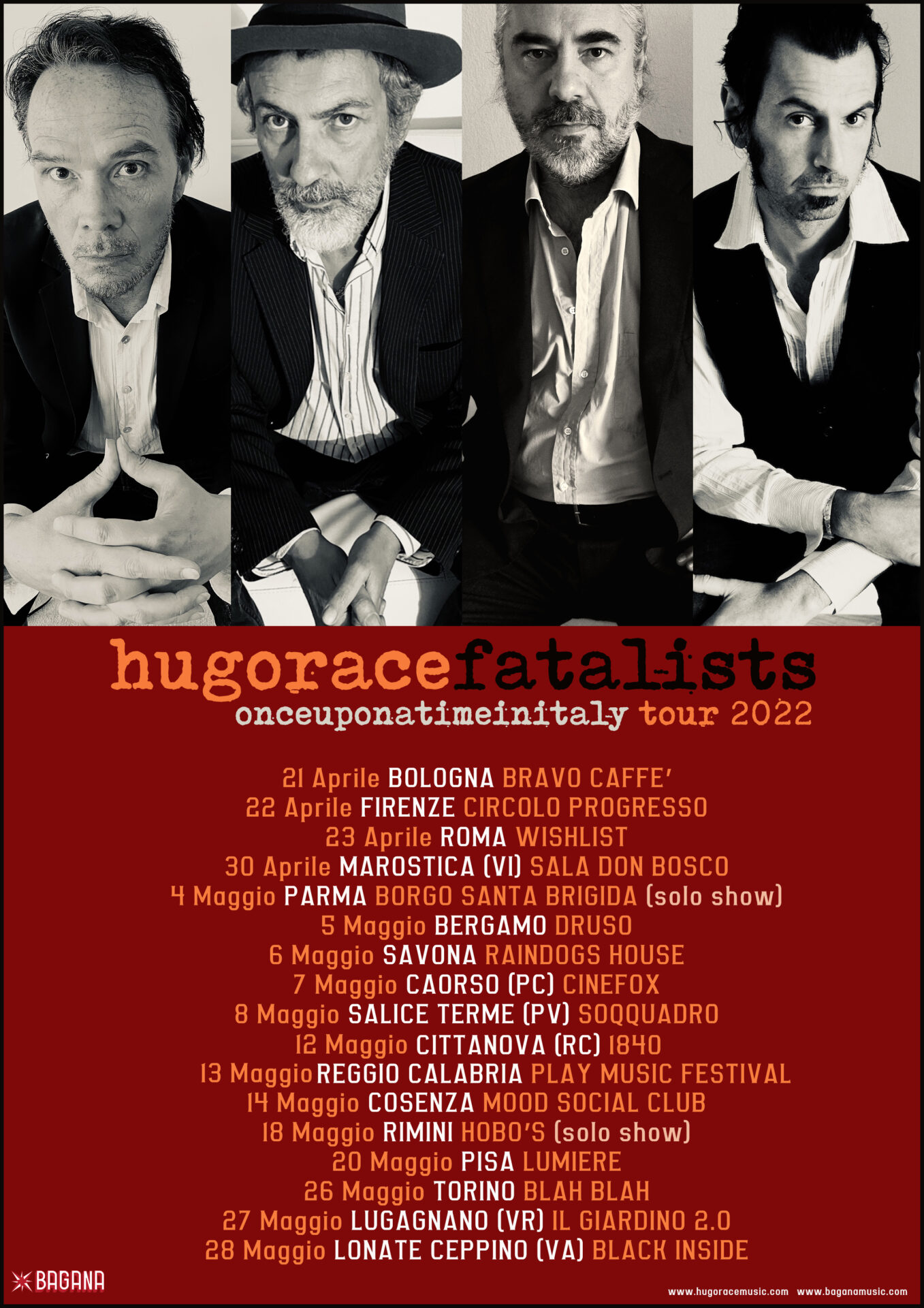 Tornano dal vivo in Italia gli HUGO RACE FATALISTS, dell’ex Bad Seeds Hugo Race accompagnato dalla band, con 17 date a supporto del nuovo album “Once Upon a Time in Italy” in uscita il prossimo 8 aprile per Santeria Records / Audioglobe. Agli appuntamenti già annunciati si aggiungono oggi sette nuovi concerti: mercoledì 4 maggio a Parma presso Borgo Santa Brigida (solo show), giovedì 12 maggio a Cittanova (RC) presso 1840, venerdì 13 maggio a Reggio Calabria presso Play Music Festival, sabato 14 maggio al Mood Social Club di Cosenza, mercoledì 18 maggio a Rimini presso Hobo’s in solo, venerdì 20 al Lumière di Pisa e venerdì 27 maggio a Il Giardino 2.0 di Lugagnano (VR).
